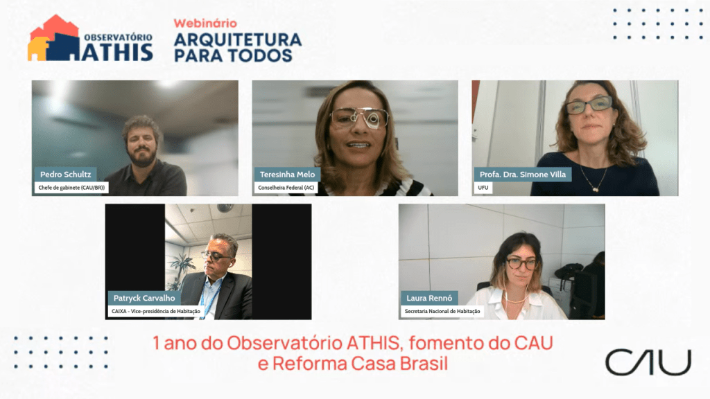 Saiba mais em: https://caubr.gov.br/webinario-do-cau-br-celebra-1-ano-de-observatorio-athis-e-parceria-em-programa-federal-de-reforma-habitacional/